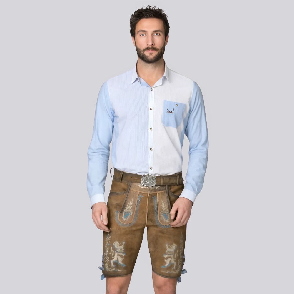 Our men’s collection features premium Lederhosen, durable Bundhosen, and finely crafted Trachten vests that deliver authentic Alpine quality. Made from premium leather with traditional embroidery, these Oktoberfest outfits offer unmatched comfort and style for festivals and celebrations. Complete your Bavarian look with classic shirts, traditional German jackets, and essential Oktoberfest accessories designed to enhance both authenticity and comfort.